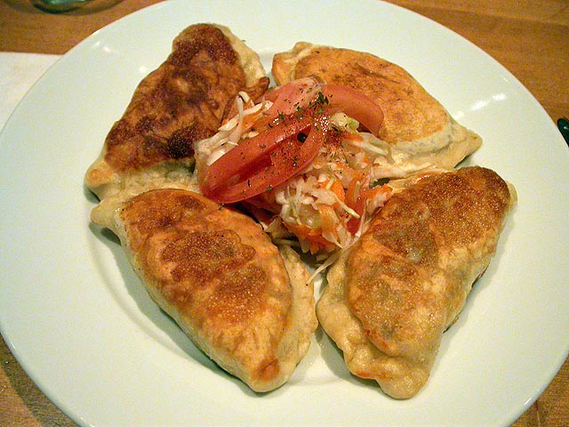 they served us anyway even though the restaurant closes at 9:30 (that's almost exactly when we got there). i had these oversized tibetan dumplings, they were okay, but i guess i wasn't very hungry since i had some rice with sausages before the show.