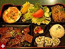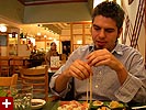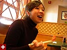 i raced into chinatown to meet james and kristine for lunch at the apollo grill. james was already inside the restaurant and called me from his cellphone when he saw me standing outside. when kristine arrived, it became a squid reunion of sorts, with almost half the former work force present. kristine came with horror stories, about being unceremoniously let go from her contract job, and then the human tragedy that happened at her apartment while she was gone, involving roommates, alcohol, sex, a wanton fiance, and a bed. the short rib box lunch special included an abalone mixed with some spicy tuna served over a scallop shell. after lunch, kristine went to the bank while james and i went to the bookstore to get some bubble ice tea to go.