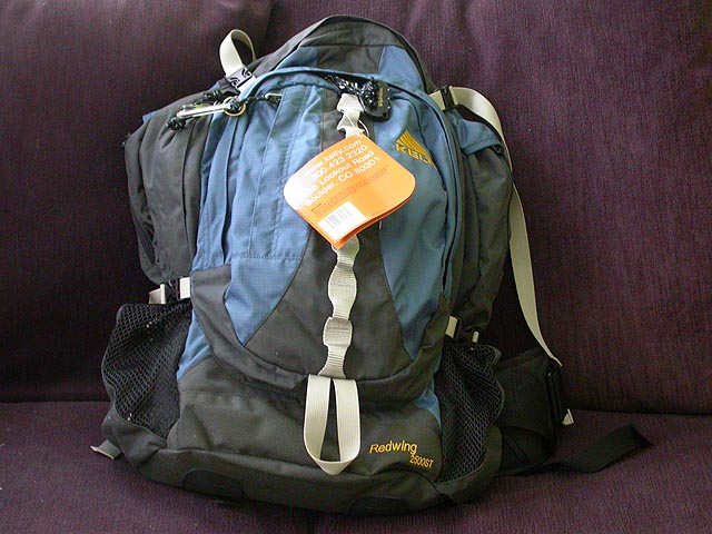 we parked right in front of an EMS and decided to take another look before heading to the REI in fenway. a guy came out to help us and showed us some mountaineering bags. he managed to sell us on a 2500 cubic inch backpack with an internal frame (the kelty redwing $100). we grabbed some food at victoria's before we left; the $4.25 chinese lunch specials weren't very good however (my general gao's chicken was a mushy mess).
