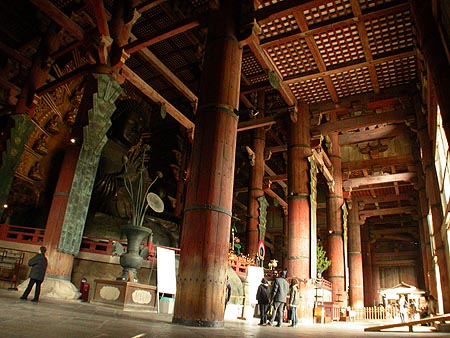 i continued walking east, past the pink ichino-torri gate, behind the nara national museum, before taking a left turn north, to todaiji temple, the home of the bronze buddha. i was within the confines of nara park, beneath the canopy of well manicured trees thick with epiphytes (reminescent of cloud forests), moss covered floors, the occasionally man-made stream, and deers everywhere. the street leading up to the temple was a mix of rickshaw drivers, souvenir shops, tourists, and deers, who seem to be mingingly with the crowd, looking for a handout of special biscuits. it was at that point my love affair with the deers took a slight deviation. an overly friendly deer was nuzzling my coat pocket, looking for food. up to that point deers have basically left me alone (unlike some people), maybe because i give off a predatory vibe (ha ha). this deer poked its nose into my pocket and pulled out my nara map. i tried to get it back by tricking the deer with imaginary food in my hand, but it was having none of it, happier with the map. so i gave up, but from that point on i was slightly blind as to where to go.