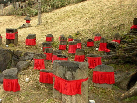 the first place that i visited was jokyoji temple, still in the heart of the commercial district. it was a small place and i was the only one there besides an old woman who seemed to run the place. i went in, strolled around, and left. i kept on walking east of sanjodori street, waiting to see the three-storied pagoda, which would be the indicator that i was going in the right direction. eventually i came to an intersection with a pond on my right (behind an empty parked rickshaw) and a staircase flanked by red flags going upwards. i climbed the stairs and saw a cemetery of jizo statues, little red bibs tied to them. further along i saw a pagoda that must've been the three-storied pagoda. and nearby, i had my first encounter with the deers of nara. the number that gets thrown around is that 1500 deers live in nara park. they were considered divine animals at one point in history, and there was even a case of someone facing execution for accidently killing a deer. nowadays they're just considered natural treasures and a draw for tourists. these deers were grazing in the grass, seemingly unconcerned with my presence. these deers are stockier than the deers back home, and their fur seemed matted, like they were about to shed. some had horns that seemed to have been cut down to nubs, and in a few faint white spots could be seen. i had come to see these famous deers but i figured i had to go further into the woods.