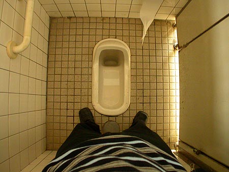 speaking of attacks, i seem to have the worst problems with japanese toilets. feeling the call of nature, i went into a public bathroom. the place was clean enough as far as public bathrooms are concerned, and even had toilet paper even though i had tucked a roll in my backpack. what i wasn't quite ready for was the fact that it was a squat toilet. now i've been through asia before, and have used squat toilets a few times in my life, but for some reason this one seemed particularly baffling to me, even though it was no different. it's like when you study for an exam and on the day of the test you just blank out. that was me. after meticulously placing my coat and my bag and my camera on the various hooks and shelves inside the stall, i carefully pushed everything down into my pockets and rolled down my pants, contorting my body into a precarious sitting position which i think should be some kind of yoga pose if it isn't already. squat toilets have a hood but i didn't know which end to face so i went with the hood to my back, which i later found out is the wrong direction (the equivalent of sitting on our western toilets facing the seat cover). i've never been more afraid to do my business, afraid that my legs were losing their strength and i'd tumble backwards into infamy, afraid that my bag would get too heavy and break off from the hook, afraid that the loose change in my back pocket would roll out into the toilet. i finished quickly as i wiped the beads of sweat from my brow, relieved at last.