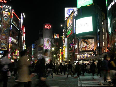 alex's laptop is password protected and he shut off his machine when he left for work. i had to call him to get the password, which he only barely remembered because he said he usually types it too fast to recall the exact keystrokes. i couldn't get in with the first password, and he had to call me back with a revised password after i left a message on his cellphone. i planned on going out and doing some shopping later in the day, but decided to take a little nap that became a longer nap. waking up at 4:30 in the morning will do that to you. during that time i felt a small earthquake rumble the bed; unlike the rumbling of a truck (which is gradual, and often accompanied by the sounds of the heavy vehicle), this tremor was sudden and lasted no more than a few seconds. i went back to sleep. i finally left the apartment again at 5:00, heading into shibuya to find the tokyu hands store to buy some umbrellas. shibuya is where all the high school kids hang out, as opposed to shinjuku, which is more of a young adult hot spot. not wanting to look like a tourist amongst the cool kids, i didn't bother taking out my map, but instead decided to find the store by intuition. i should realize by now that my internal guidance system is completely faulty, and whenever i can lead myself in the completely wrong direction, i will. so after walking aimlessly ("taking in the sights" is an euphemism), my time ran out and i returned to the station to take the train one stop to ebisu, where i was meeting claudio and alex for dinner. i met claudio at the lobby of his office building, and we returned to shibuya, where we met tami and alex. just so happens claudio wanted to show me tokyu hands so we ended up going there anyway. they didn't have the umbrellas i wanted, but i did buy some lovely postcards.