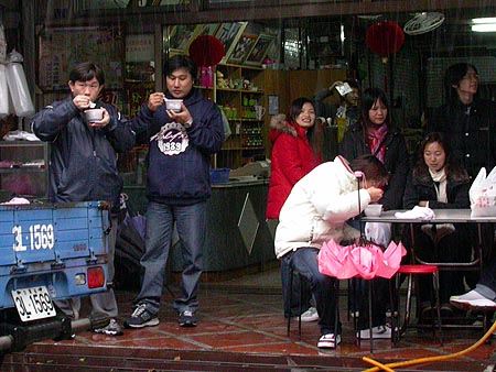 ![]() i'm sitting here in some internet cafe in shingdien, taipei (computer 14), thick with cigarette smoke, my keyboard half melted by careless smokers, a sticker on my monitor reads "do not download pornography!", and the sounds of boys furiously playing network games all around me. i asked how much for just 15 minutes of time and the guy said they only charge hourly (NT$35/hr which is about a dollar). i arrived on thursday afternoon, and since then i've been eating so much street food that i'm surprised i'm not sick yet! and i never appreciated how cheap the food is here too. every chance i can get i go out and get some smelly tofu (about a dollar a plate of tofu, compared to $6 back in boston), or i try a new beverage from the convenience store. taiwan is different from japan in that i can actually speak the language. i can listen in on other people's conversation, and when i'm lost i can ask for directions. and even though i can't read chinese as well as i speak it, i just tell people that i'm not from around here and they're more than happy to translate for me. so in terms of fitting in, taiwan is great. it won't be like this once i arrive in southeast asia, where i will be completely in the dark language-wise (even in japan, with my 3 years of college japanese, even though i couldn't speak it, i could still read enough of it to find my way around). please let me path be paved in english for the rest of my trip! that'd be so awesome! i've got photos (not tons, the weather's been bad since i arrived, rainy, and the taiwanese are more suspicious of people with cameras compared to japan where people don't care), some really cool ones of waterfalls from yangminshan national park, but i don't think i can download my photos (i'll give it a try another time). my cousin has internet access but his machine is slow and old and i have problems getting into my site (and even to check e-mail). my time here is nearly up! i'll be back another day.
