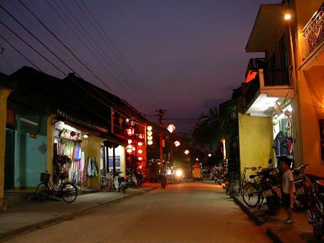 yesterday i spent the day either in my hotel room with the balcony door opened and the fan on watching television, taking showers (it was hot as well), and going next door to eat at the cafe with my new japanese friends. it had the making of a very boring and unproductive day (not everyday has to be an adventure), but then later in the evening we went to the closing ceremony of the hoi an legendary night. there was some sort of performance with dancing and music, which i couldn't distinguish from all the chinese performances i've seen in my life. vietnamese people were barred from participating, it was a foreigners only affair, and the locals were held back by barricades and riot police. they floated paper lanterns on the river, that was pretty, but hayato said they do that in japanese to remember the dead. we came back to our hotels and grabbed some food from a restaurant on our street (our favorite cafe was closed by then).