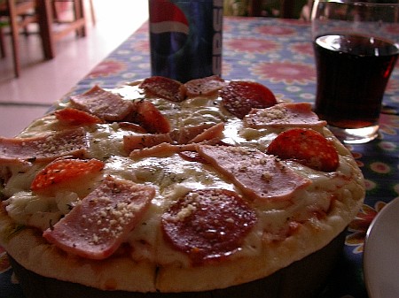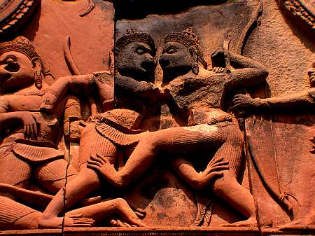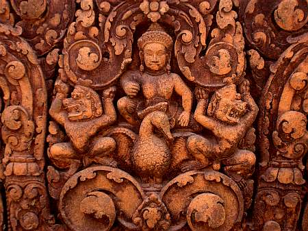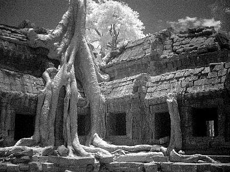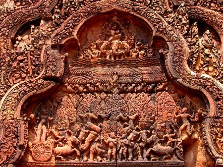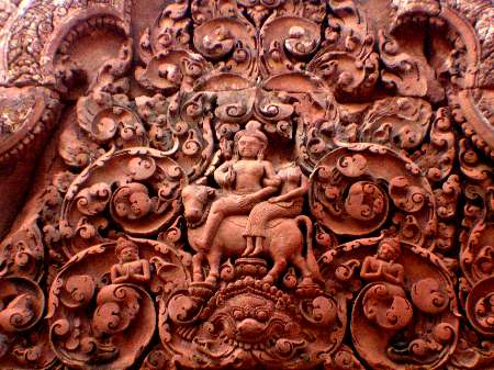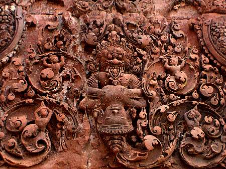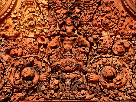 i left for banteay srei at 8am this morning, my tuk tuk driver discretely waiting for me about a block away outside my guesthouse. banteay srei is famous for its sandstone carvings, said to be the best in angkor. unfortunately its sort of far away, and it took about an hour just to drive there on sometimes bumpy and potholed roads. by the time i got there, there was already a crowd, busloads of japanese, korean, and taiwanese tourists. it didn't really matter anyway, half of banteay srei was closed for renovations, and you couldn't even walk into the central compound, so a lot of carvings could only be seen from a distance. all this for US$12, which was the cost of the ride. coming back, i asked my driver to make a quick stop at ta prohm, where the noonday sun had driven most of the crowds into hiding, so i had the place to myself, for a while at least. coming back into town, i took a shower then went out looking for food, coming into the busy part of siem reap (which at its best, still resembles a dusty outpost). i went to a place called "happy pizza angkor," and had myself a small pizza. there's no mention why the pizza is happy, but i could already guess, and after finishing the pizza, i'm pretty sure those little green herbs on my pie weren't just oregano.