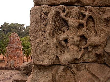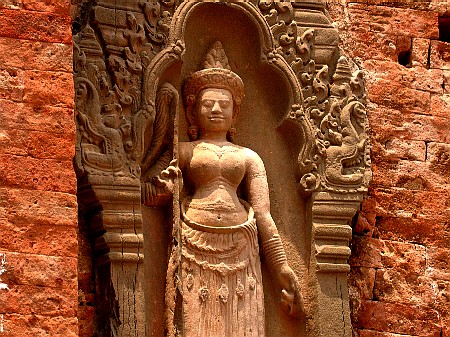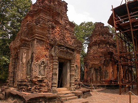 although i have one more day left on my pass, today will probably be my last day of temple wandering. tomorrow will be a free day, relax, prepare myself for friday morning, when i take a plane to laos. this morning i went to the roluos group, the very first capital of the khmer civilization. the weather looked like it'd rain, just in time for the khmer new year, which starts tomorrow and runs through the end of the weekend. it never did rain however, and despite the clouds, it was just as hot as ever. after visiting three sites, i went back to the guesthouse. i came back out to buy a new backpack (US$10, something to hold all the souvenirs i've been collecting, mostly books though) then got a sandwich and a mango shake at some health place. tonight, i might go back to that crappy japanese restaurant, just because it's nearby and cheap.