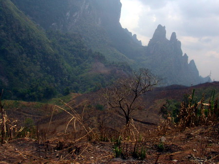 before we left the station i saw the driver burning incense in the front of the bus, and at one point during the journey, who actually stopped by a roadside shrine to ask for luck i suppose. in the past there's been some banditry on this street of road, and people have been killed. although we didn't encounter any bandits, our driver drove so fast on tiny mountain paths that i had to close my eyes a few times. at one point we had some mysterious mechanical problems and the driver stopped the bus to take a look out back. he never engaged the emergency break, and soon the back was slowly sliding backwards down the mountain. everyone on the bus screamed and ran outside. my brain wasn't quick enough to process the danger, and i stood in the back of the bus, waiting to see what would happen. besides, i couldn't easily get out anyway, a motorcycle blocked my path (how they got it inside the bus, i'll never know). after a few seconds there was a crash and the bus came to a stop on its own. i looked over the edge of the mountain, apparently it just wasn't my day to die in a bus crash.