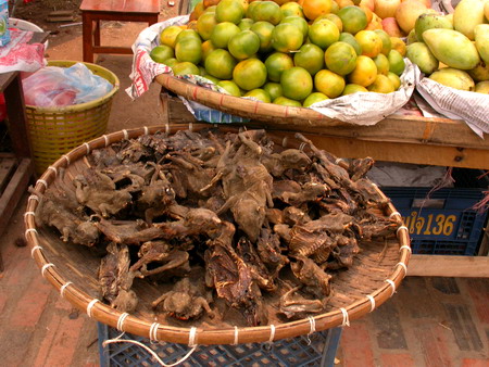 dried rodents: can't make out whether they're rats or squirrels. just when i thought laos food was pretty tame!