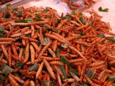 i found a vendor that sold fried insects. i bought a bag of crickets and a bag of mealyworms for 50 cents. i plan on trying them out tonight, late night snack on the balcony, listening to the geckos.
