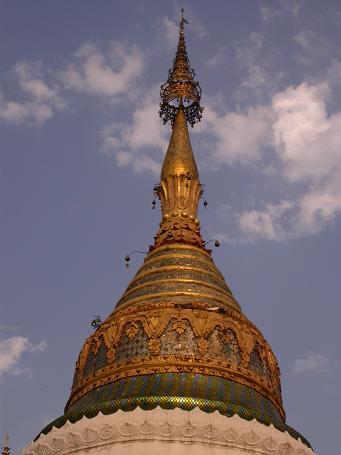 leaving the temple, a tuk tuk driver flagged me down, asked if i wanted a ride. he offered to take me to wat ku tao, the only burmese style chedi in chiang mai, and to offer me a discounted ride (back to my guesthouse), in exchange i have to visit a few handicraft factories so he can get some commission. i agreed, and he brought me to wat ku tao, which looks like a chedi that gaudi would've designed, all organic looking and lavishing decorated with glittering crystals.