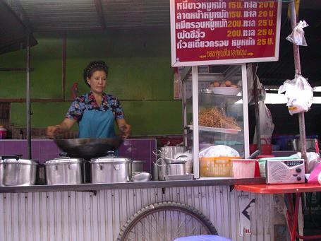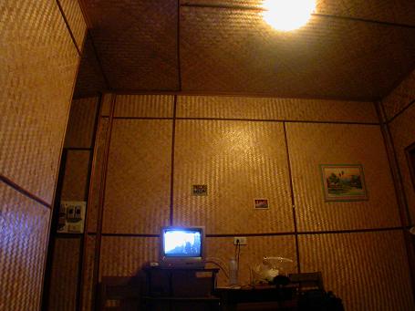 a few hours later i went out to get some dinner. up to that point i hadn't eaten anything (not breakfast, not lunch), only a box of melted chocolate pocky that i had in my bag and some leftover peanuts i got from a chiang mai market. i went with some street food from the night market, some chicken on a stick, a coconut shake, and a bowl of thai style pan fried noodles with pork. i even had time to check the price of another hotel; i thought it'd be more expensive but it was actually the same price as what i was paying (AC + TV as well), and downstairs there was a lounge bar (behind a room with tinted windows) where every night a selection of ladies would entertain the customers with singing. as tempting as that might be, i didn't think i needed that in my hotel. i checked my e-mail quickly at an internet cafe before going back to my guesthouse.