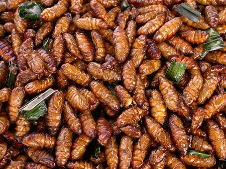 i bought some bugs (to eat) again before i left, then wandered the various mall bookstores in downtown bangkok until i found a copy of "farang," a bangkok-based english-language traveling magazine about things to do in southeast asia. i went back to the guesthouse to do some reading, snacking on my bugs. grasshoppers i already had, but beetle grubs was something new: after my first bite i didn't want anymore. while grasshoppers are crunchy, beetle grubs are soft and have a unique taste which can only be described as insect-like.