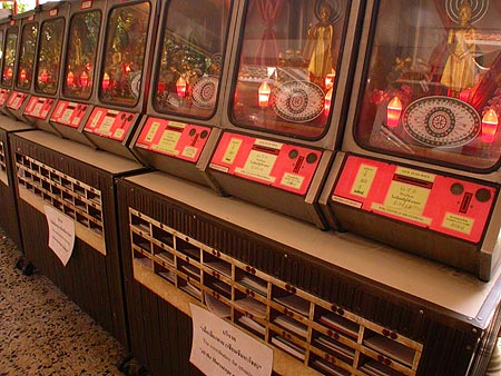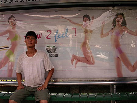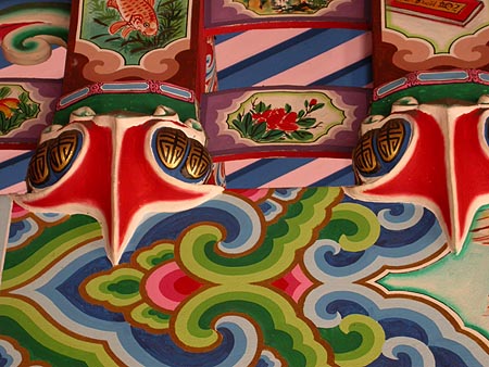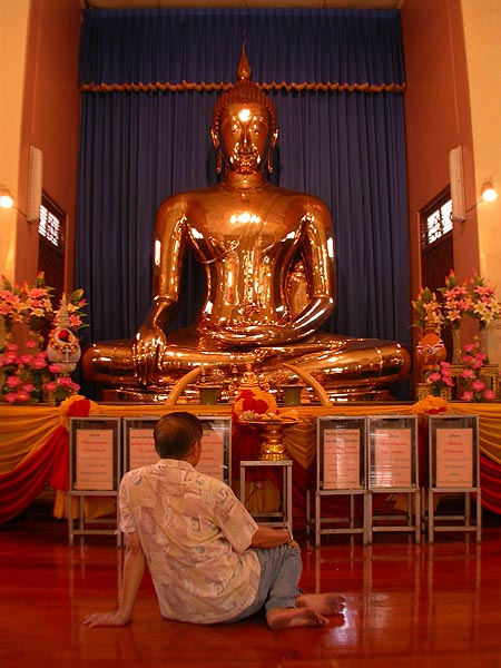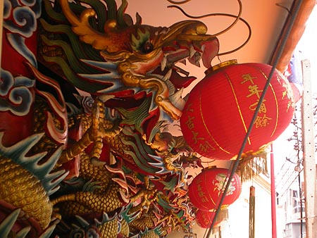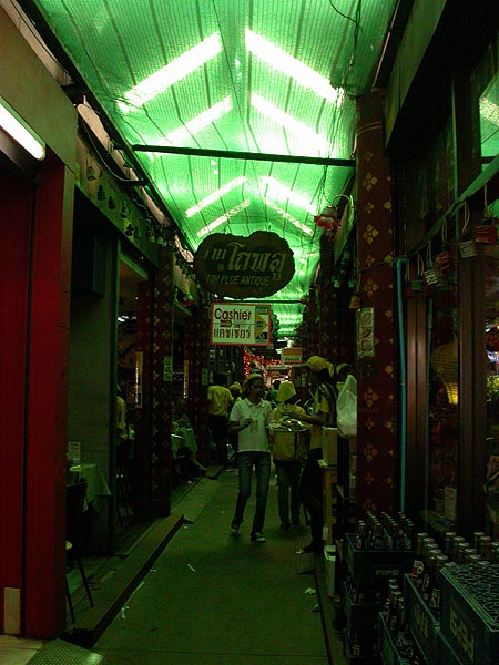 went back to chinatown today (via subway) to see the largest golden buddha in thailand. if you ask me, i wasn't impressed, as far as buddha statues are concerned, i'm more of a quantity over quality kind of guy. i discovered a few more temples to preoccupy my morning, as well a chinatown history museum. i learned that the chinese and thais have a long history of mutual cooperation, and that king taksin who recaptured the thai capital of ayutthaya in the early 1800's was ethnically chinese. i got a thai ice tea at a 7-11, and accidently spilled some on my shirt which made it appear like i had a little "man business" accident.