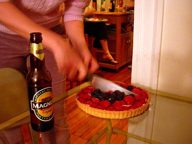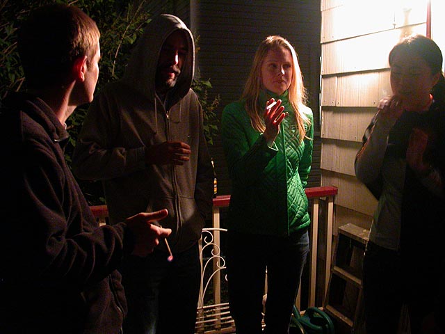 when evening rolled around, i headed down to jamaica plain. the usual JP folks were there along with a few new faces. i provided the cheroot cigarettes that a handful of us smoked out on the backyard deck in the rain after we finished with the food. when it came time to go, i got a ride from ed.