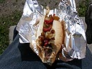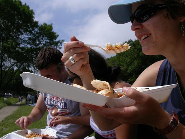we parked our bikes and got some food, julie with some indian, while i had an italian sausage and a pepsi ($7). we ate by the river and met up with rahda and david who were nearby sitting underneath a tree. the weather was nice when the sun came out, but the warmth made me worried that we might be in store for another heatwave. together we walked around a bit.