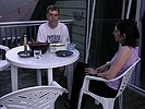 in the evening, peter gave me to a ride to renata's place in JP. she made dinner for us and we ate out on the backyard deck. prostitution seemed to be the topic du jour, as renata delighted in my retelling of the "playing connect four with a thai prostitute" story, and peter told us about having dinner with friends in a vietnamese brothel in saigon. after dinner we had strawberries (with nutella) for dessert, then drank hot tea underneath a canopy of summer stars and flashing lightning bugs. later renata showed us a photo slideshow from a friend of her's who spent 4 months in africa. when the presentation was over, peter and i returned to cambridge.