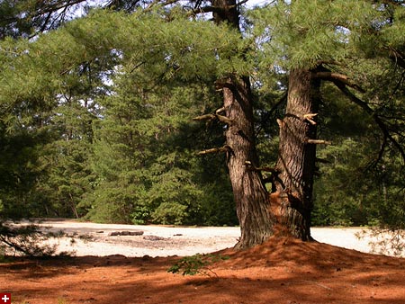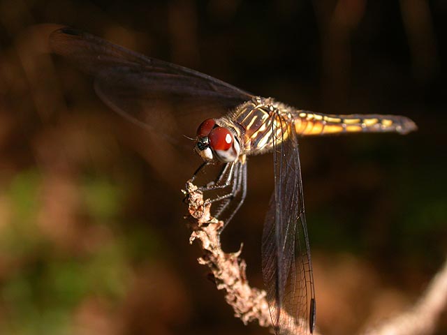 learning from yesterday's mistake, i printed out a trail map of the forest before i left the house. although there were a few places you could park along the side of the road to get into the memorial forest, i went to the "official" parking lot down the end of a hidden street, which i didn't know whether or not it was private or public. the lot was empty, a good sign, because there's no greater buzzkill than when i'm out naturing and i come across other people (something about these new england woods that turn me into a misanthrope). after applying a liberal coating of bug repellent, i walked into the forest, following a clearly marked trail. the mosquito level was pretty bad (something about the trail going through a lot of swamp land, go figure), made worse by the fact that i was wearing a dirty (i.e. smelly) t-shirt. i didn't suffer too many bites, but they would constantly swarm around me, especially inside the forest, not so bad out in the open. i hung around on a short wooden bridge crossing a small stream, taking photos of dragonflies, feeling the sun burning the back of my neck. i then followed the desert loop, where the trail was covered with sand. it brought me to a large sand pit, which felt like an empty beach in the middle of the forest, all sand, no water. i retraced my steps and came back out. from a distance i saw something on my motorcycle, and i was afraid it was a parking ticket (i sort of parked the bike in the woods, nature be damned), but instead it was a note from a neighbor telling me that i was on private property and that i should park somewhere else. i crumpled the note into my pocket (instead of throwing it on the ground, which was my first instinct) then rode off, kicking up pine needles with my wheels.