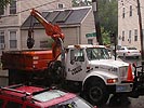 since i've been back, the pipes that travel inside the wall of my living room to my upstairs neighbor have been making some really awful sounds, like they're going to burst. this problem sounds familiar, i wonder if he's had it before, i'm going to check the basement tomorrow before letting him know about the situation. the city of cambridge sent a dredging truck to my street to dig out one of the blocked sewers.