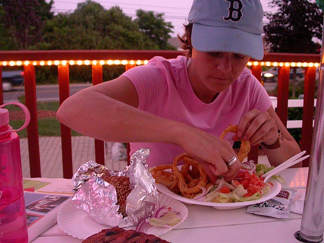 after we had our fill of the beach, we went across the street to get some food. i had the baby back ribs dinner, it was so-so. but what i'll remember most of this night is eating outside and being swarmed by hungry mosquitoes. i ate with one hand, the other hand slapping my naked legs from the onslaught of biting flying insects. i didn't even finish my food, taking what was left with me as we got back into the car and drove back into the city.