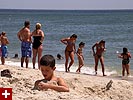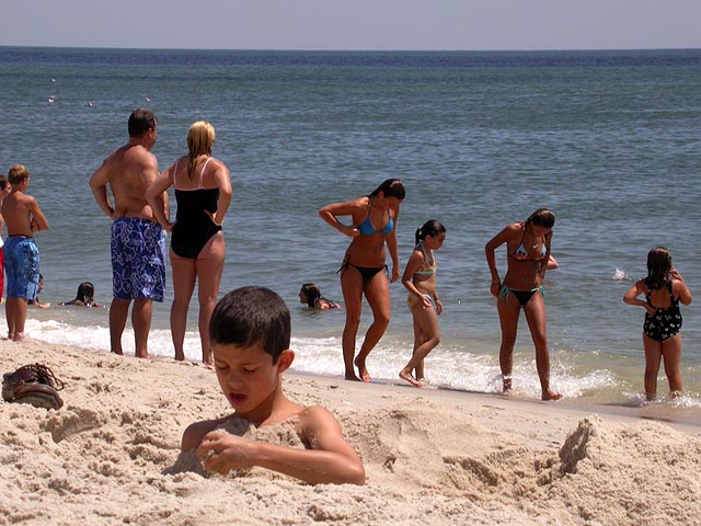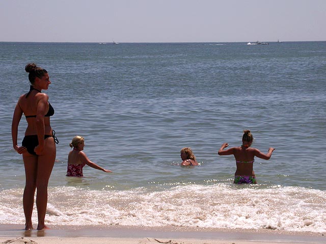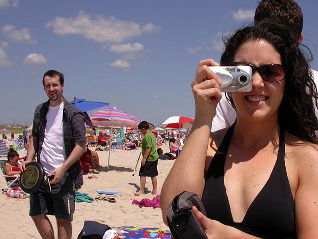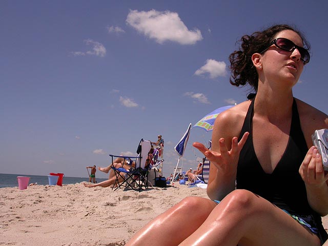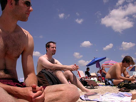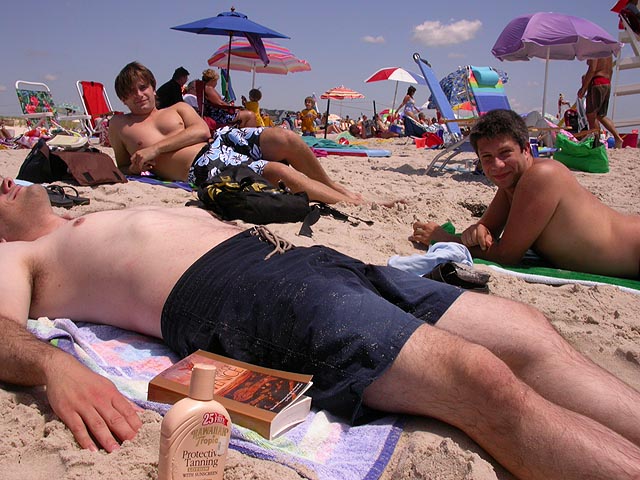 ah the beach! it's almost mandatory that we'd pay a visit to cupsogue beach. so after breakfast, we left in two cars, megan came with dan, john, and myself, while mark drove brendan, lionel, and andie. halfway there a police cruiser pulled mark over, who was following behind us, so we stopped as well. we watched in the rear-view mirror, wondering what was going on. dan thought maybe it was a speeding violation, but if you've seen dan drive, he adheres to the speed limit (barely). once we got to the beach parking lot ($10 admission) we finally got the whole story. the cop pulled them over because he couldn't see the license plate (it fell off, but it was visible from the rearview window, massachusetts plate). then he said they were playing their music too loud (which is ironic, because we were blaring our music as well, an offensive collection of booty singles). then he told mark to warn us that if he saw us again with our broken tail light (dan's car) he'd give us a ticket. it just seemed the police was looking for a reason to stop us, but at least nobody got a ticket (mark just got off with a warning).