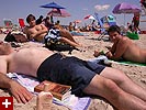 the water was cold and the waves were strong; i went up to my knees then came right back, spending the rest of my time lying on my beach towel. i didn't bother putting on any sunblock; i wanted to get dark and i figured i already had a base coat so i wasn't really going to burn. i did put some on my feet when i could start feeling them sting a little bit from the sun.