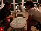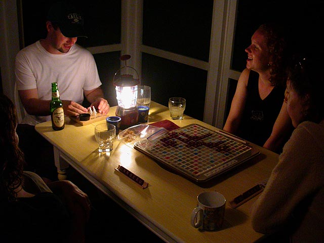 after dinner a bunch of people went out into the field to play some softball. i stayed back at the house chatting with mariane about our travels. suddenly there was a commotion; apparently sean (christine's boyfriend) hurt himself pitching (pulled something) and was in some pain. john and deanna ended up taking sean (and christine) to the local area hospital, leaving everyone else back at the house to make our own fun.