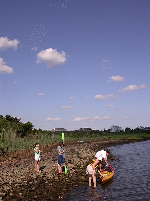 horseshoe crabs crawling on the ocean bottom. john and deanna help may and mariane with some kayaking equipment. mariane ended up kayaking out into the open waters,