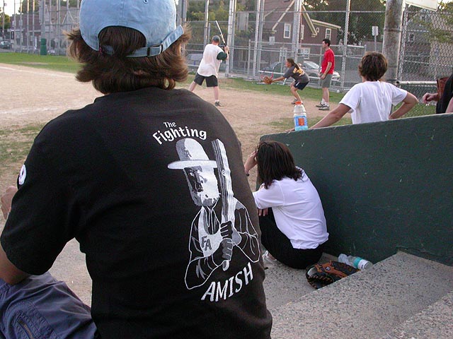 i cleaned up the house a little bit (the place can get pretty cluttered when i don't have people over in a while) before riding out to trum field near ball square, where julie was playing in her softball league,