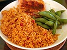 i went home before julie arrived and started preparing dinner. tonight's menu was some mexican rice along with sichuan-style toaster oven prepared salmon steaks with a side of chinese five-spice edumame beans.