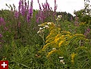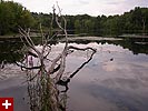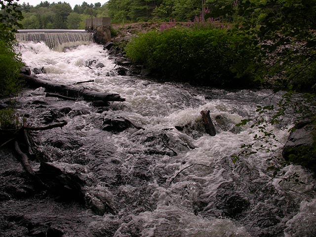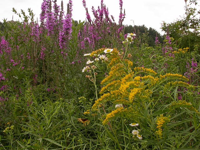 if somehow i could overlook all the dogs, there was also the abundance of poison ivy growing everywhere. and besides the poison ivy, i walked through fields of tall grass, home of the ticks. there was very little "wildlife" besides the summer blooming flowers. some dragonflies darted around hobbs pond but none that would land. some bluejays were mobbing something unseen in a tree. there were a lot of milkweed plants, but they looked new, like maybe somebody had mowed the field recently; that being the case, i couldn't see any signs of monarch activities. i found some long-jawed orb weavers near a bridge spanning a small waterfall. that, along with some unknown orange berries (which i was tempted to try, but decided to play it safe), were the only two interesting things.