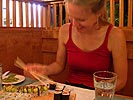 we got our ticket first before crossing the street to mr.sushi to get some japanese food. i had the maki combo, which eliza made some comment about the quantity (18 pieces); turns out she was right, it was more sushi than i could handle.