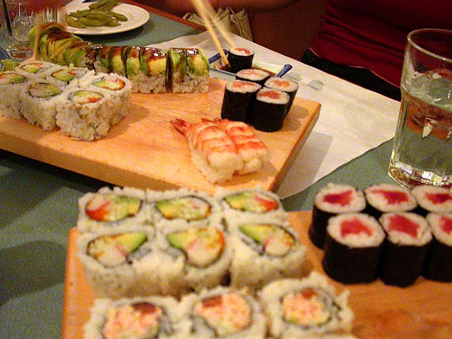 jaeda ordered the caterpillar sushi which was pretty good, i'm now a big fan of any sushi that has eel (unagi). afterwards eliza waited in line and got seats for us while jaeda and i went next door to buy some contraband candy. i was surprised by how packed coolidge corner was as well; they screened broken flowers in their largest room and it was completely to capacity.