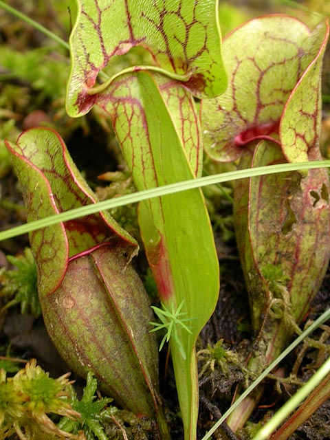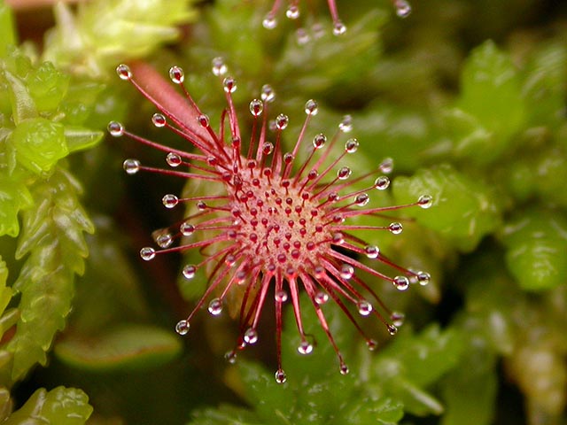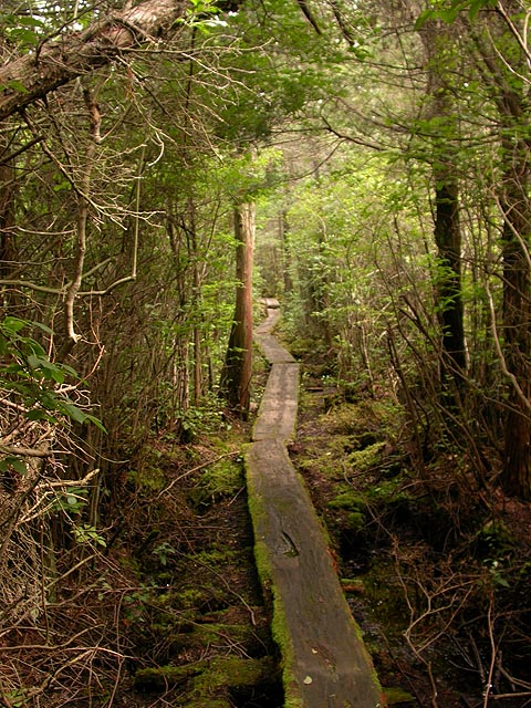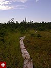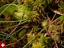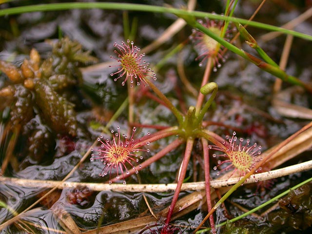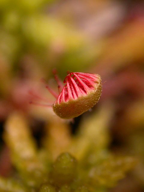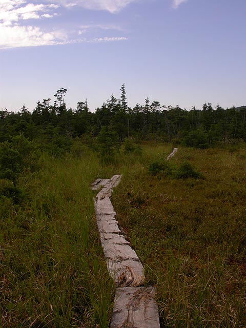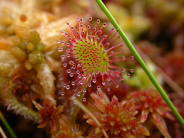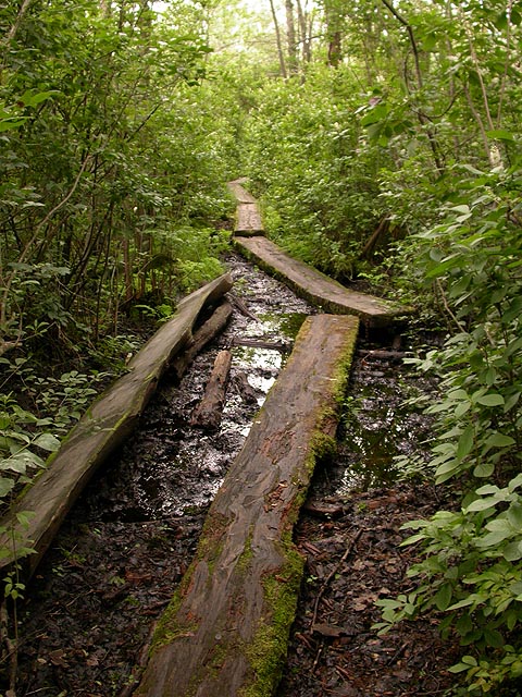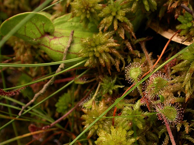 at the first clearing i crounched down on all fours to take photos of some newly discovered sundews. i was surprised to hear voices and looked up to see a couple with a dog coming down the narrow boardwalk. i got up to talk to them about the bog, they asked where they could find pitcher plants. the woman seemed impressed and asked if i was a biologist of some kind. "oh no, i'm just a programmer," i answered, "this is just my hobby that takes me out of the office." i was horrified when their dog jumped off the boardwalk and into the bog, the couple seemingly oblivious to the fact that their pet was trampling on delicate sundew plants. i let them pass me as they made their way further into the bog, and crounched back down again to take more photos.