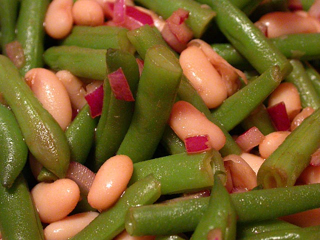 eliza was supposed to come over tonight for dinner and then we'd go see the aristocrats down at kendall cinema. we invited jerica as well, who needed some cheering up after her landlord cancelled her house party this coming weekend. since they'd be arriving late, i started preparing dinner ahead of time: two beans salad, tortellini with mushroom sauce, assorted berries fruit elixirs, and cantaloupes.