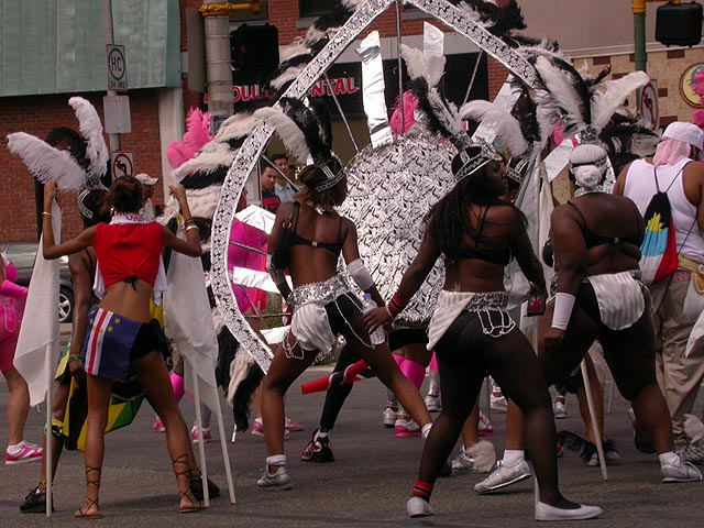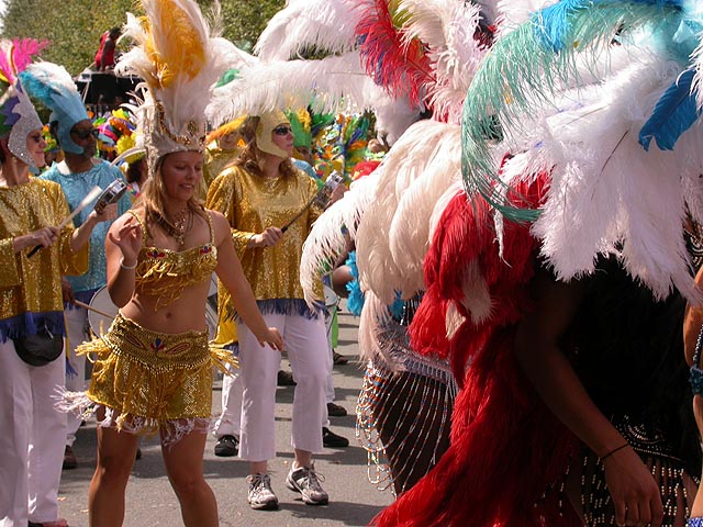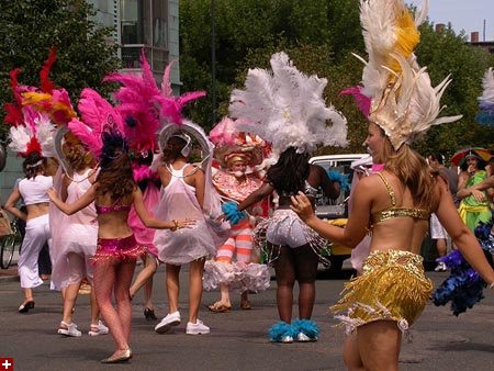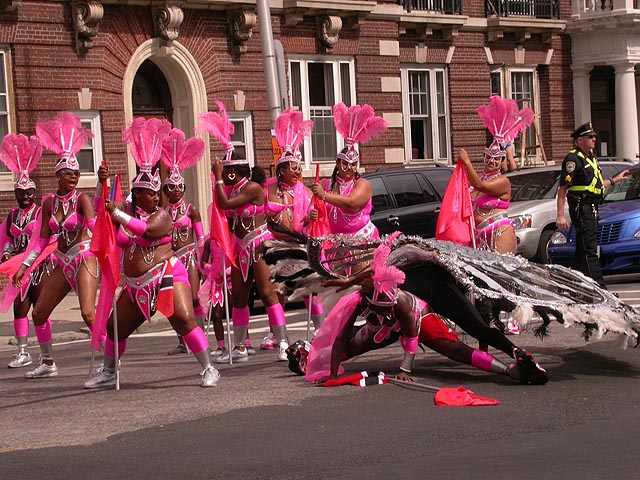 after visiting the garden one last time (i collected one last harvest before julie comes back from the mountains later tonight), i went to my second street party today, in my own backyard of cambridge, between central square and MIT. there was a brazilian procession leading the pack, as a bevy of lovely ladies danced ceaselessly down the street. say what you will, but brazilians know carnival and they do it right. that was followed by a rocking troupe of cowgirls. a lot of the participants from yesterday's carnival were in attendance as well.