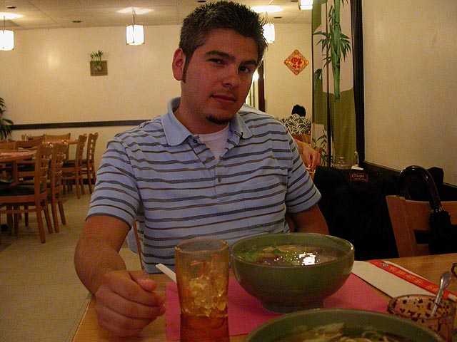 i made it to chinatown without any problems, parked on lincoln street (former street of squid country), and waited for james. we ate at the noodle alcove, where i had my usual hand-drawn beef noodle soup. i talked about what i've been doing to pay the bills. james was telling me how both he and jaime are currently injured, which puts a damper on their home renovation work. we discussed the upcoming football season, then about a drive-in movie theatre in rhode island that used to show pornos.