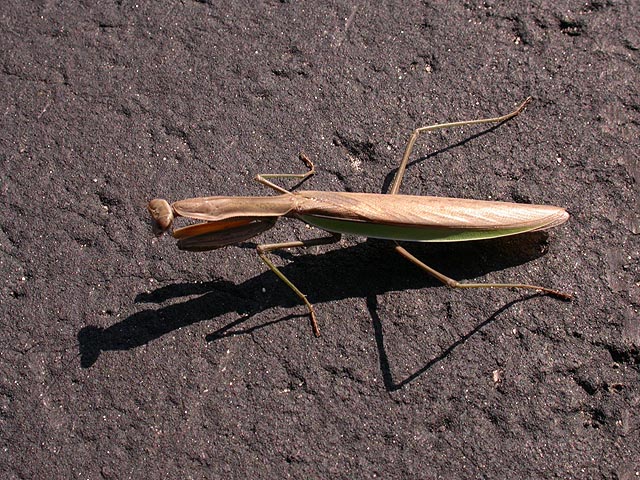 i saw a large praying mantis on the ground. i knew mantises exist in the new england area but up until now i've never seen one before. from the brown color i knew it was a male (females are green). i tried to pick him up, being careful not to get bitten (i once saw a man in burma get bit by a mantis), but he was a fast runner so i gave up the chase. the meeting went well, and after showing them some past director work, i left around noon.