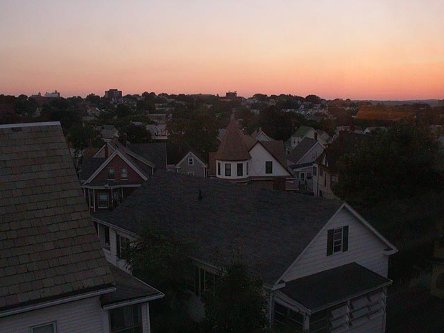 at 7pm i went over to joel's new single apartment in somerville. on top of a hill with a great view of the city and beyond, it was a really nice place, well furnished, like he'd been living there for a long time, impossible to guess he'd just moved in a few weeks ago. julie arrived soon afterwards with our wings order. we watched the red sox game on his widescreen high-definition monitor/tv. HDTV is so clear it's like being right there in fenway park. once again, a come-from-behind win, helped by the hitting power of john "old school" olerud.