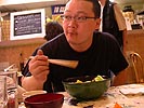 so we drove to the porter exchange to get some food. we grabbed the both at the far end of the eatery corridor, the one right next to the public bathroom. a cute waitress greeted us in japanese;