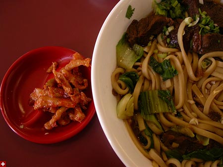 during the meeting i got a call from renata's brother marsian, who was thinking about coming into town so we could go digital video camera shopping. i stopped briefly at the cafe to get some beef noodle soup before going back home to called marsian back. he ended up not coming because he found a good camera deal back in rhode island. i went out again to run errands, sending out some invoices, getting some prescriptions refilled, and going to target to buy some detergent (returning home to do some laundry). i also thought about what i was going to make for tuesday dinner since it was my turn to cook. jawei came home in the late afternoon, and i invited him to go grocery shopping with me. i showed him how americans love cheese, and pasta, and tomato sauce, devoting whole aisles to said food products.