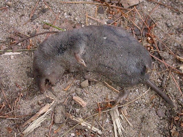 at first i thought it was a dead mouse, then upon closer inspection, it was either a mole or a shrew, neither animals i've ever seen in the wild, alive or dead. when i came back home i looked it up and realized it's a short-tailed shrew. cool thing about shrews: they're one of the few poisonous mammals and their bites (with sharp tiny teeth), although not fatal to humans, can be quite painful since it's a combination of neurotoxin and hemotoxin.