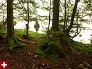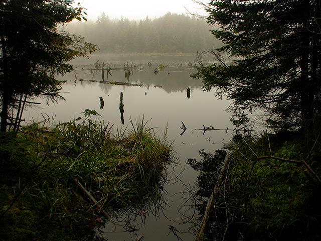 i stumbled to the bathroom in the fog, and after a few sips from a bottle of juice, i put on my gear and walked downhill into the woods. it wasn't long before i saw my first eft standing on a pile of leaves. sensing my vibrations, it turned around slowly and tried to hide but not before i snap a few photos. after that i probably saw 6 more efts of various sizes. i went as far as the lake's edge, before i decided to head back and wake up renata; it would've been easy for me to have kept on walking, but i knew renata would never forgive me if i wandered off on my own without letting her know.