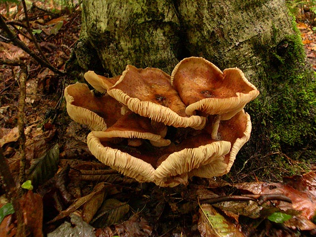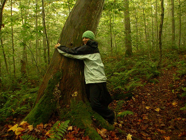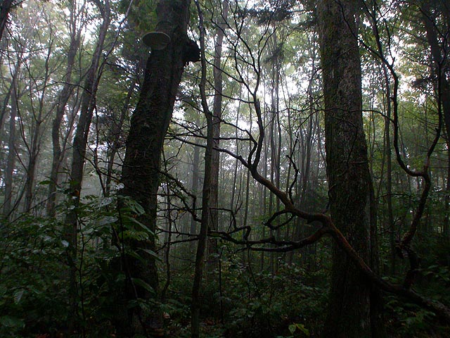 back at the campsite, i wasn't quite sure the proper etiquette for waking somebody inside a tent, so i knocked on the metal frame and whispered, "renata?" "yes?" she answered back (i was relieved that she was still alive after last night). "time to go naturing," i said. "okay," she replied. i waited for her inside the screen house (admiring the transparent leaves on roof, like natural stained glass) as she went to go brush her teeth (she went to bed without brushing). within minutes we were back in the woods again. it kept on raining throughout, most of the time it was a light drizzle, but occasionally there'd be very brief periods of heavier showers. for the most part we were safe from the weather since we were underneath the forest canopy, but everything was damp enough that eventually most of my jeans would get soaked from brushing up against the wet leaves.