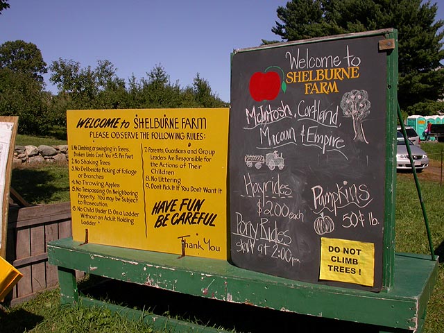 last night i was researching places to go for some apple picking. as a kid i remembered going to lookout farm in natick, and figured that'd be a good place to return to again. much has changed since i went apple picking as a child though; lookout farm now charges admission to get in, $6 per person, and that doesn't include the actual apple picking, which cost $1.50 per pound of apples. so i looked for an alternative location, and found shelburne farm in stow, which has free admission and charged by the bag load.