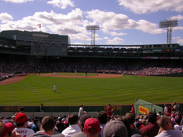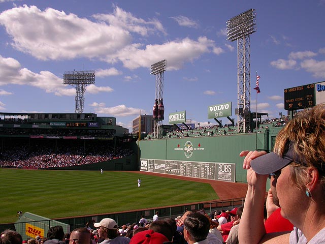 by the time we sat down the score was already 2-0 in the first inning. the game went quickly behind wakefield's mastery of the knuckleball, and the red sox ended up winning 3-1 in under 2:30.