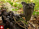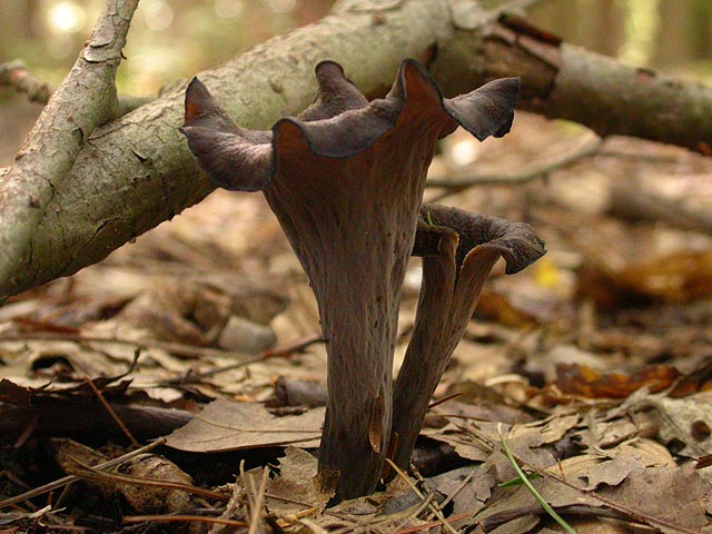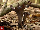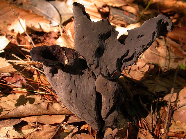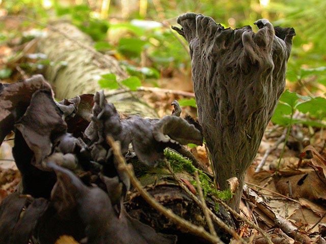 where the boardwalk ends there seems to be more trail following the perimeter of the pond. i tried to walk it but i was actually standing on the bog itself. as a test i hopped up and down a little bit and could see the ground undulating. i also noticed i was slowly sinking into the bog, the water up to my ankles already. i grabbed onto a nearby tree branch and hoisted myself out of the bog, quickly back onto dry land. it'd be nice to explore with some proper equipment (like rubbers boots), but not today. i left the bog but spent some time in the nearby forest looking for interesting mushrooms to take photos of. there were a lot of black trumpets (which are edible, but i wouldn't eat them), which i discovered when i nearly became lost in the forest again (that place is cursed i tell you, next time i'm going with a buddy). i also noticed the small grove of hollies nearby.