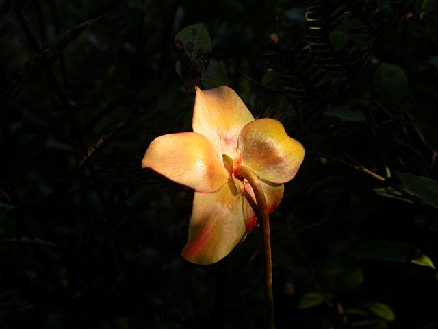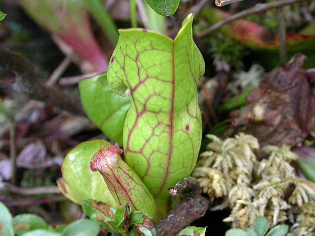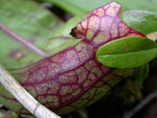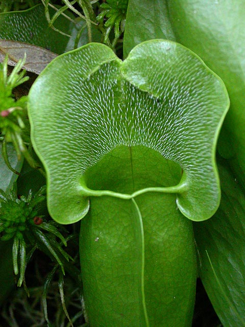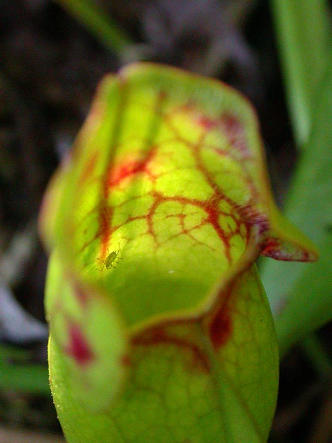 i finally think i know the reason why i like pitcher plants so much: because they look so alien and erotic at the same time, all elongated with veins, curvaceous flaps leading to a deposit of enzyme rich fluid, covered in fine hairs, a combination of male and female genitalia, it doesn't look like it's from this earth, yet it thrives in these moist boggy environments (where they reek of a musky odor). when i see one i am simultaneously embarassed and titillated.