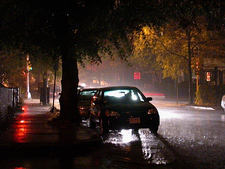 tonight i went to a last-minute party that rob and his three other roommates were hosting at their apartment in somerville. the rain was pretty intense and even though i thought i'd be late, i was the first guest to arrive. i brought a six-pack of harpoon root beer, but confused the heck out of people when they drank soda thinking it was beer. i found the roommates huddled in the dark living room, watching the baseball game with the sound off. the bad weather definitely had an adverse effect on the turnout, and for one reason or another, the ratio of female to male was also a little skewed (1 lady for every 5 guys).