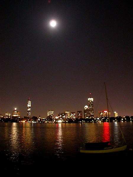 the weather was now good enough that i could go riding again; it's been weeks since i've been on the bike. i headed out to the charles river, to see the boston skyline with the full moon high in the clear night sky. all that beauty is wasted on me.